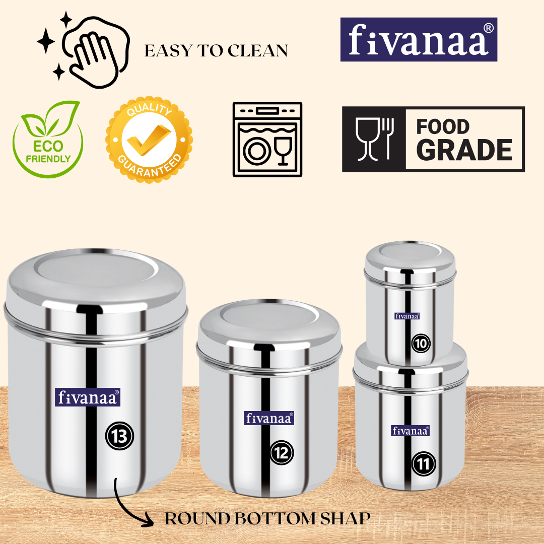 - fivanaa Food grade High Quality Mirror Finish Stainless Steel. It is Strong, Sturdy Durable and Rust Free. It is Easy to use, clean and maintain. These Containers are Dish Washer Safe