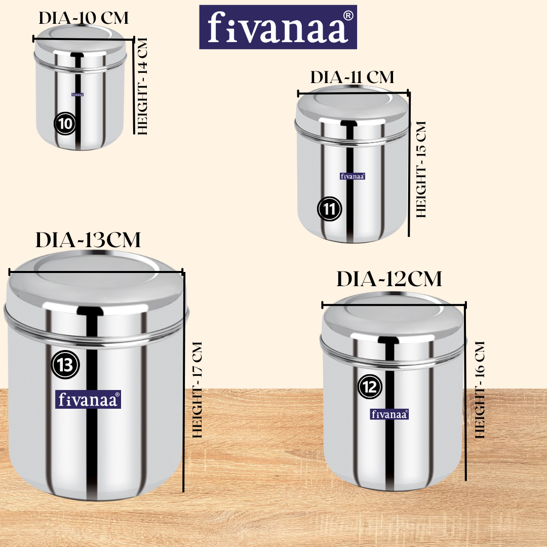 fivanaa storage containers made from the food grade stainless-steel material which ensures strength, quality and durability. This attractive mirror finish unique Shape canister can used to store Biscuits, Snacks, Food grains, Spices, Corn Flakes, Toast, Khari, Snacks, Mukhwas, Dry fruits, Chocolates, etc. This storage canister is rust proof and hygienic. Made from 100% food grade stainless steel making it highly durable and resistance to corrosion. All Containers are of Different sizes which will fulfill all your Storage Needs as per requirement.